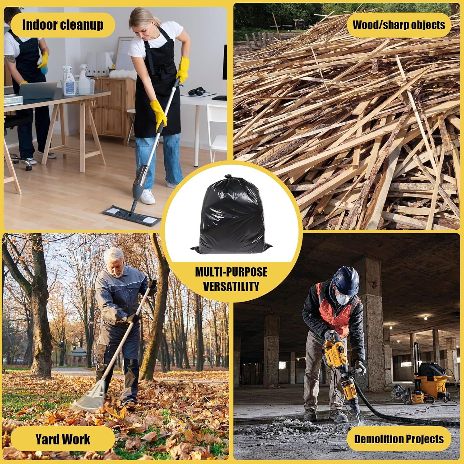 - 【Extra Large Capacity for Tough Jobs】:With a generous 55-gallon capacity, these trash bags are ideal for large-scale cleanups, construction sites, warehouses, and outdoor events. They effortlessly hold bulky items and heavy debris, making them a must-have for tough jobs.