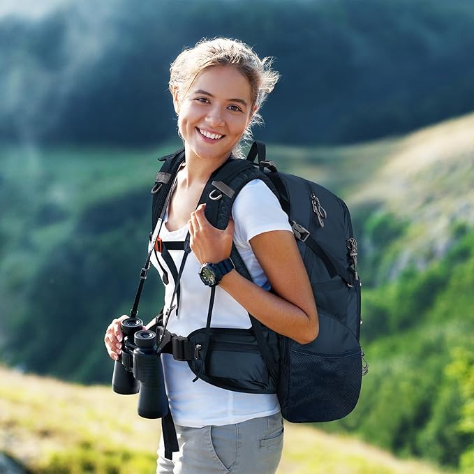 - Spacious And Organized Storage Space: The large capacity hiking backpack measures about 13.4*8.6*22" (W*H*D), capacity: 40 liters. lightweight backpack is equipped with a spacious backpack with zippered main compartment, 2 front zippered pockets, 2 waist zippered pockets, 2 side pockets and 2 mesh pockets, which can efficiently store and categorize different items