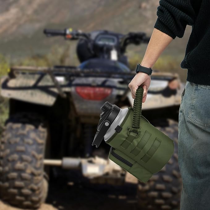 - 1000D Upgraded Material - It utilizes 1000D nylon fabric renowned for its exceptional wear resistance, boasting a tearing strength of up to 40Kg, heat insulation, and durability. Available in three sizes: 32 oz water bottle carrier, 64 oz water bottle carrier, and 128 oz water bottle carrier