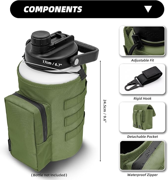 Water Bottle Holder Bag with Molle Strap - Water Bottle Carrier Pouch for Walking, Gym, Camping, Fishing, Hunting 32oz, 64oz, 128oz One Gallon Tactical Carrier Holder