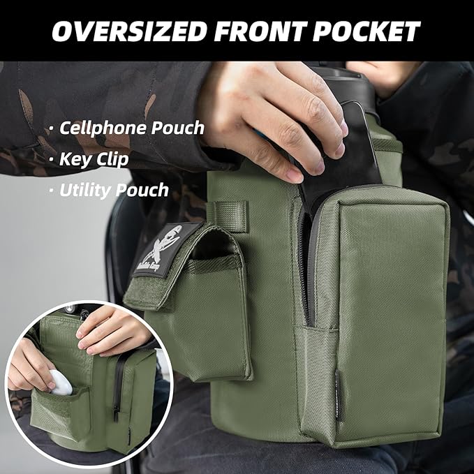 - Two Pocket Design:The large pocket features waterproof zippers, accommodating items like a 7-inch phone and cards securely within a dedicated water bottle pouch sleeve. The small, detachable pocket is ideal for carrying essentials like keys, cash, and small tools, offering both convenience and flexibility