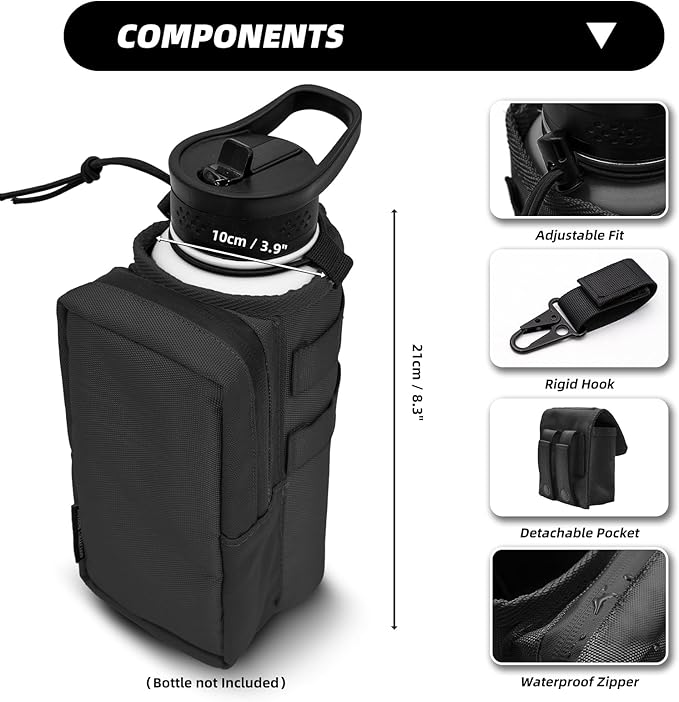 Water Bottle Holder Bag with Molle Strap - Water Bottle Carrier Pouch for Walking, Gym, Camping, Fishing, Hunting 32oz, 64oz, 128oz One Gallon Tactical Carrier Holder