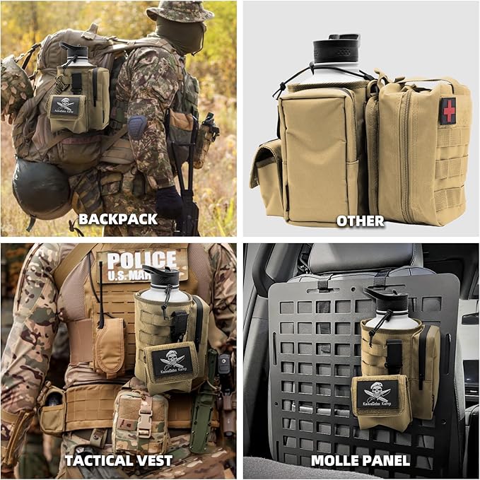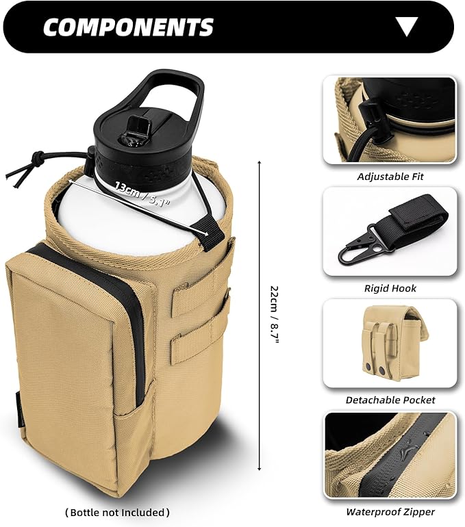Water Bottle Holder Bag with Molle Strap - Water Bottle Carrier Pouch for Walking, Gym, Camping, Fishing, Hunting 32oz, 64oz, 128oz One Gallon Tactical Carrier Holder