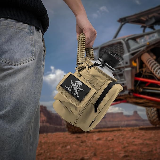- 1000D Upgraded Material - It utilizes 1000D nylon fabric renowned for its exceptional wear resistance, boasting a tearing strength of up to 40Kg, heat insulation, and durability. Available in three sizes: 32 oz water bottle carrier, 64 oz water bottle carrier, and 128 oz water bottle carrier