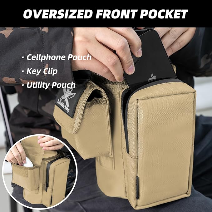 - Two Pocket Design:The large pocket features waterproof zippers, accommodating items like a 7-inch phone and cards securely within a dedicated water bottle pouch sleeve. The small, detachable pocket is ideal for carrying essentials like keys, cash, and small tools, offering both convenience and flexibility