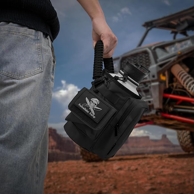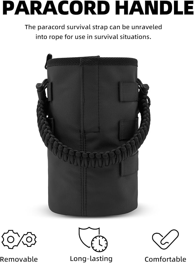 - 1000D Upgraded Material - It utilizes 1000D nylon fabric renowned for its exceptional wear resistance, boasting a tearing strength of up to 40Kg, heat insulation, and durability. Available in three sizes: 32 oz water bottle carrier, 64 oz water bottle carrier, and 128 oz water bottle carrier
