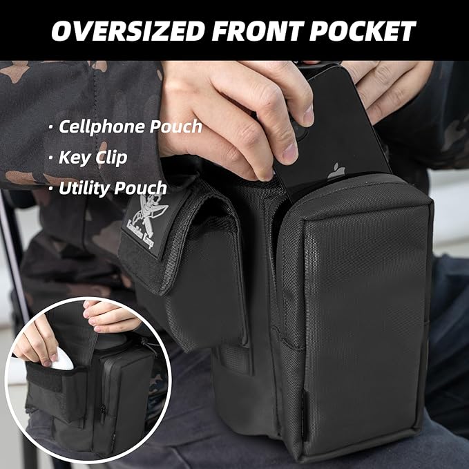 - Two Pocket Design:The large pocket features waterproof zippers, accommodating items like a 7-inch phone and cards securely within a dedicated water bottle pouch sleeve. The small, detachable pocket is ideal for carrying essentials like keys, cash, and small tools, offering both convenience and flexibility