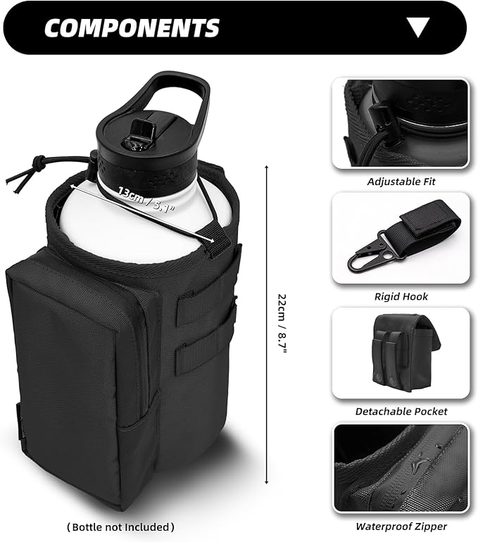 Water Bottle Holder Bag with Molle Strap - Water Bottle Carrier Pouch for Walking, Gym, Camping, Fishing, Hunting 32oz, 64oz, 128oz One Gallon Tactical Carrier Holder