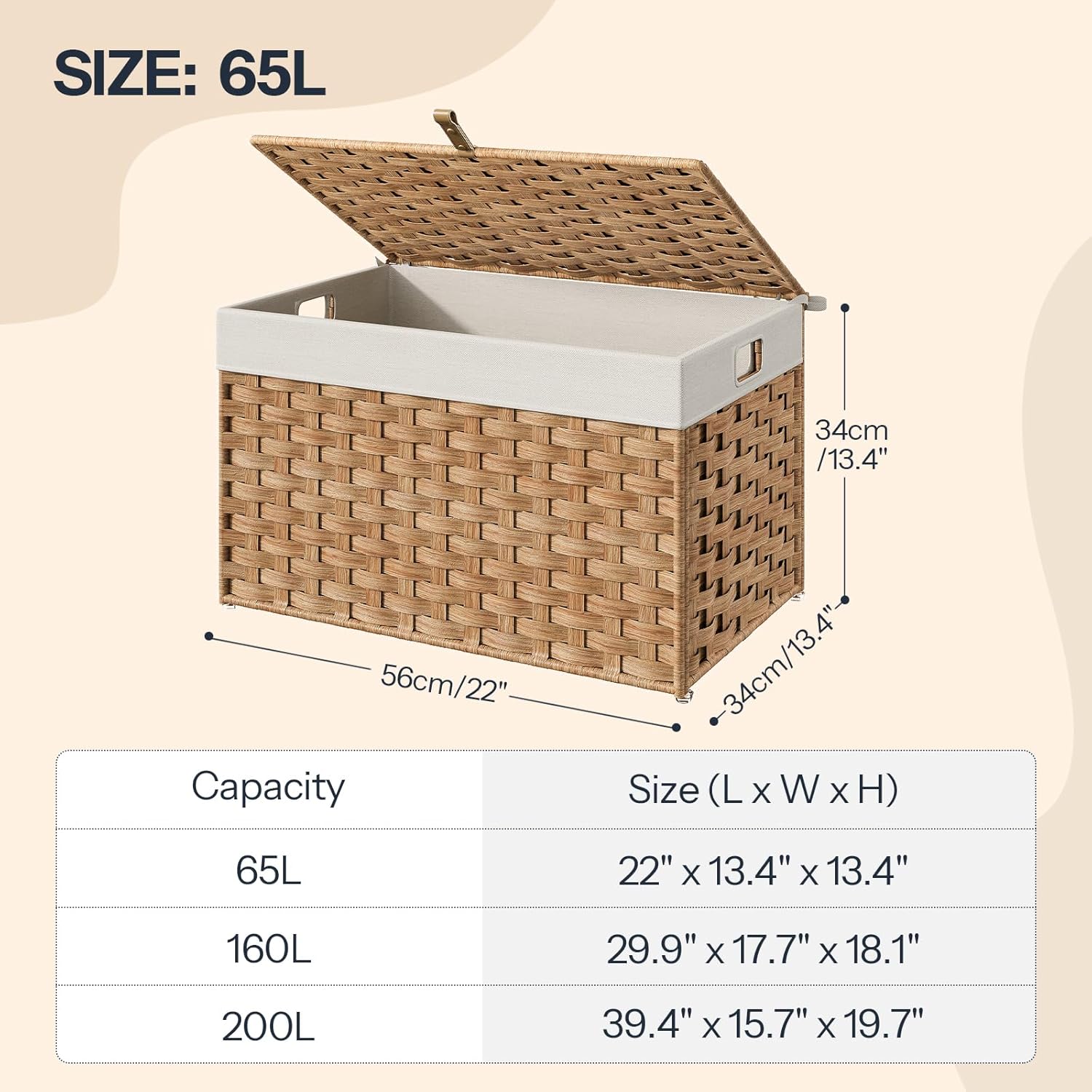 - Ultra-Spacious Storage: This 65L storage basket is a clutter-buster for bedrooms, etc. Its full-open lid lets you swiftly grab or stash clothes and blankets. No more messy chaos; it turns your space into a neat, organized haven