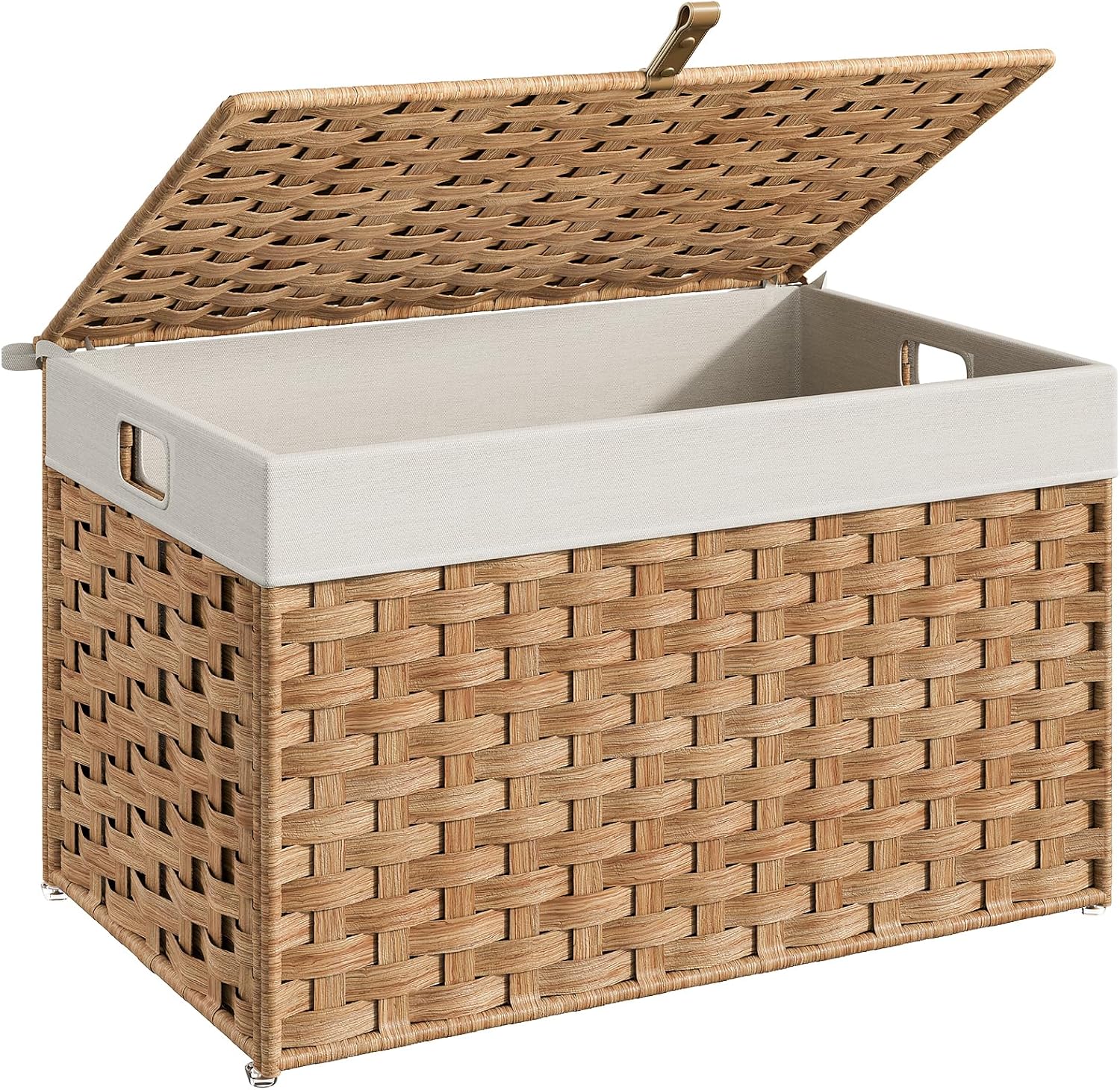 - Thoughtful and Convenient: The storage basket's lid has a PU handle for a comfortable grip. Non-slip foot nails prevent sliding and protect the floor. The hollow-out handles on the sides make it easy to move and reposition