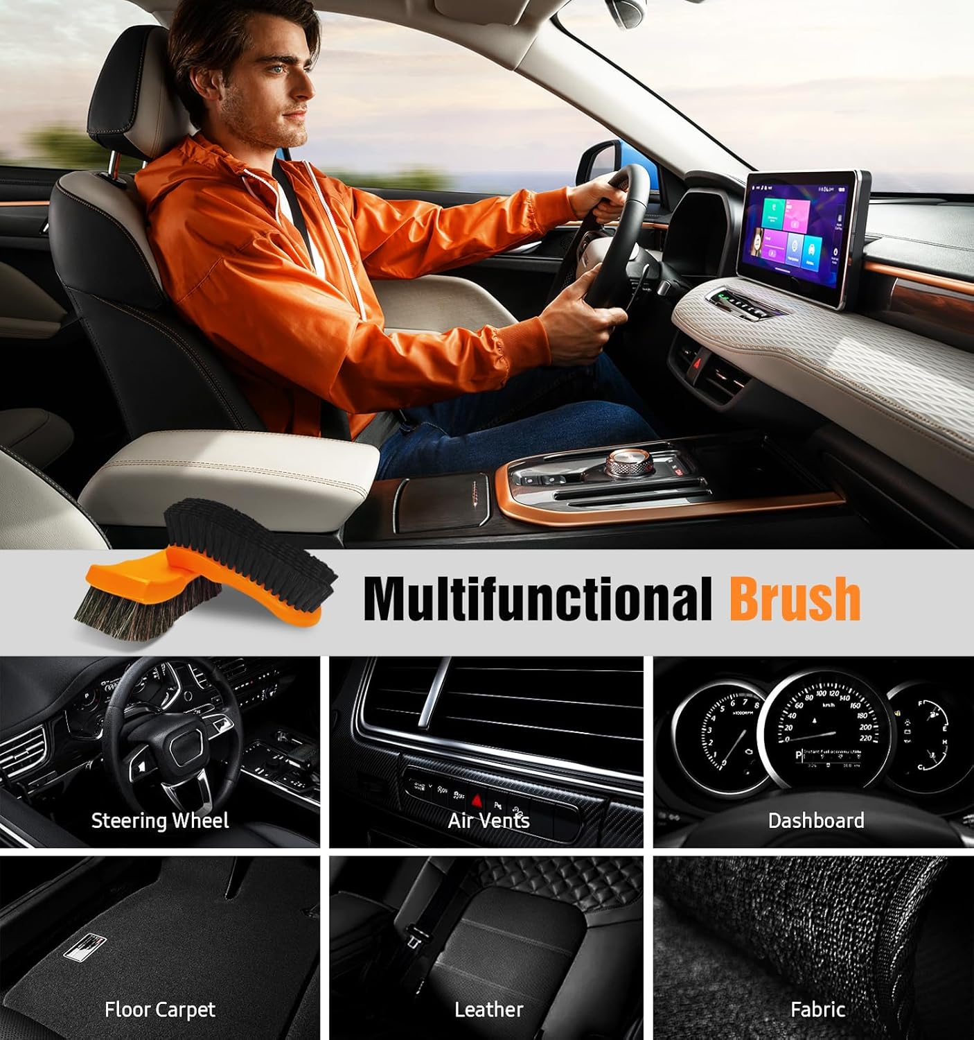 - Ergonomic Handle Design: Car detailing brush handle is is made from premium ABS materials. Ergonomic design ensuring comfort during long cleaning sessions. The handle provides a secure grip, making it easy to maneuver while you clean