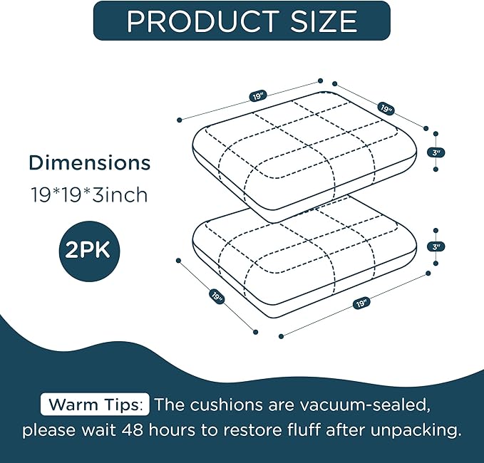 - Sized for Small Spaces, Big Comfort: Perfect for balconies, patio chairs, or compact patios—this 19x19 cushion brings lasting comfort and modern style to space-conscious outdoor setups.