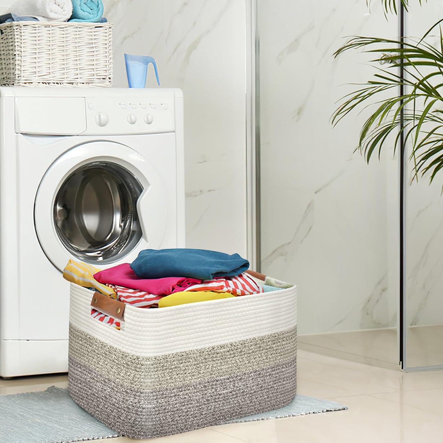 - Decorative & Versatile: Pure Natural Material Elevates Any Space - Laundry, Toys, or Blanket Storage Solution.The elegant leather handles not only take care of your hands but also add a distinctive highlight to our large baskets.