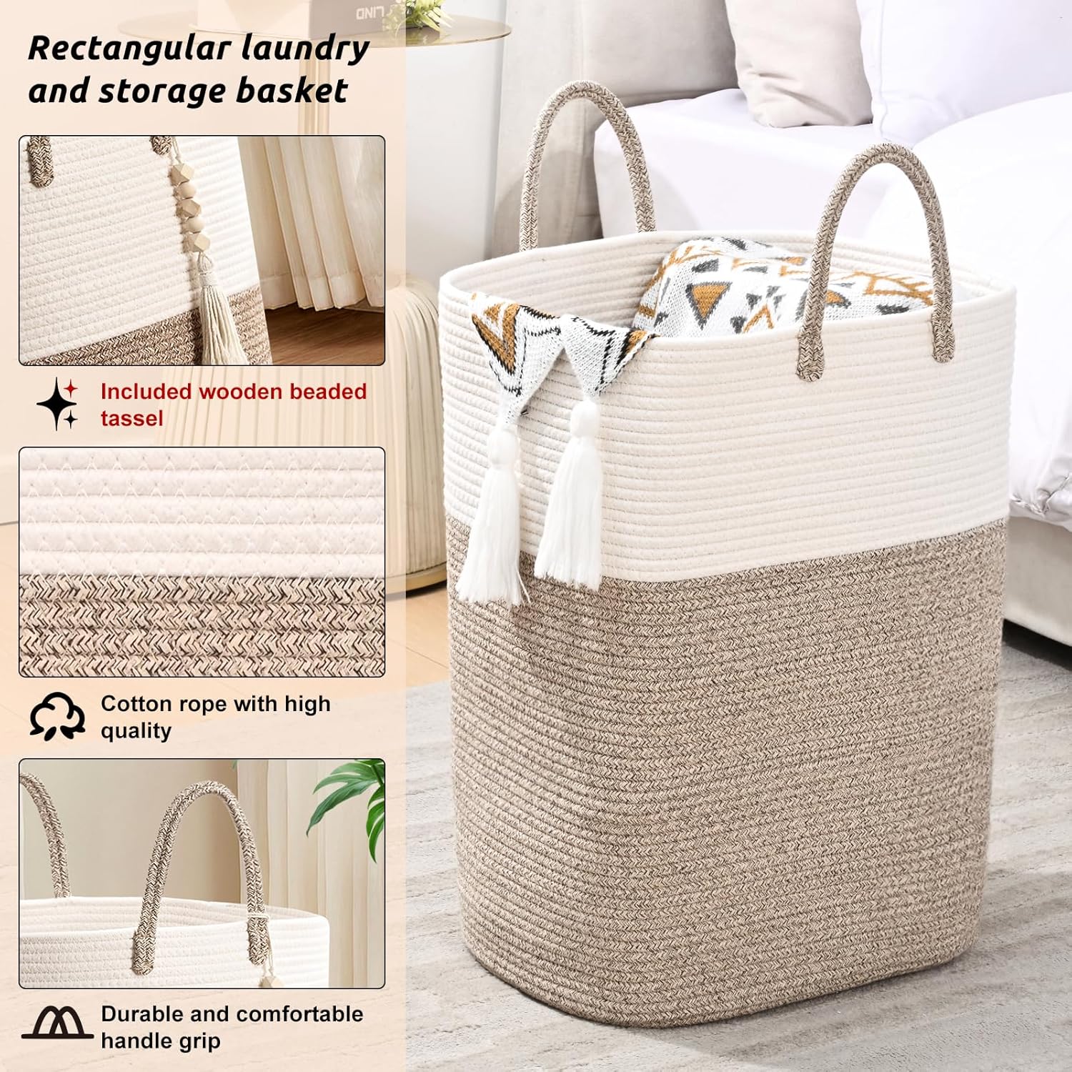 - π[DURABLE, BREATHABLE & SKIN - FRIENDLY COTTON]: Made of sturdy and odor-free rope cotton, woven laundry basket has a solid addition to any space. Tall laundry basket quite sturdy and spacious, capable of holding a good amount without losing its shape, which adds to its practicality.