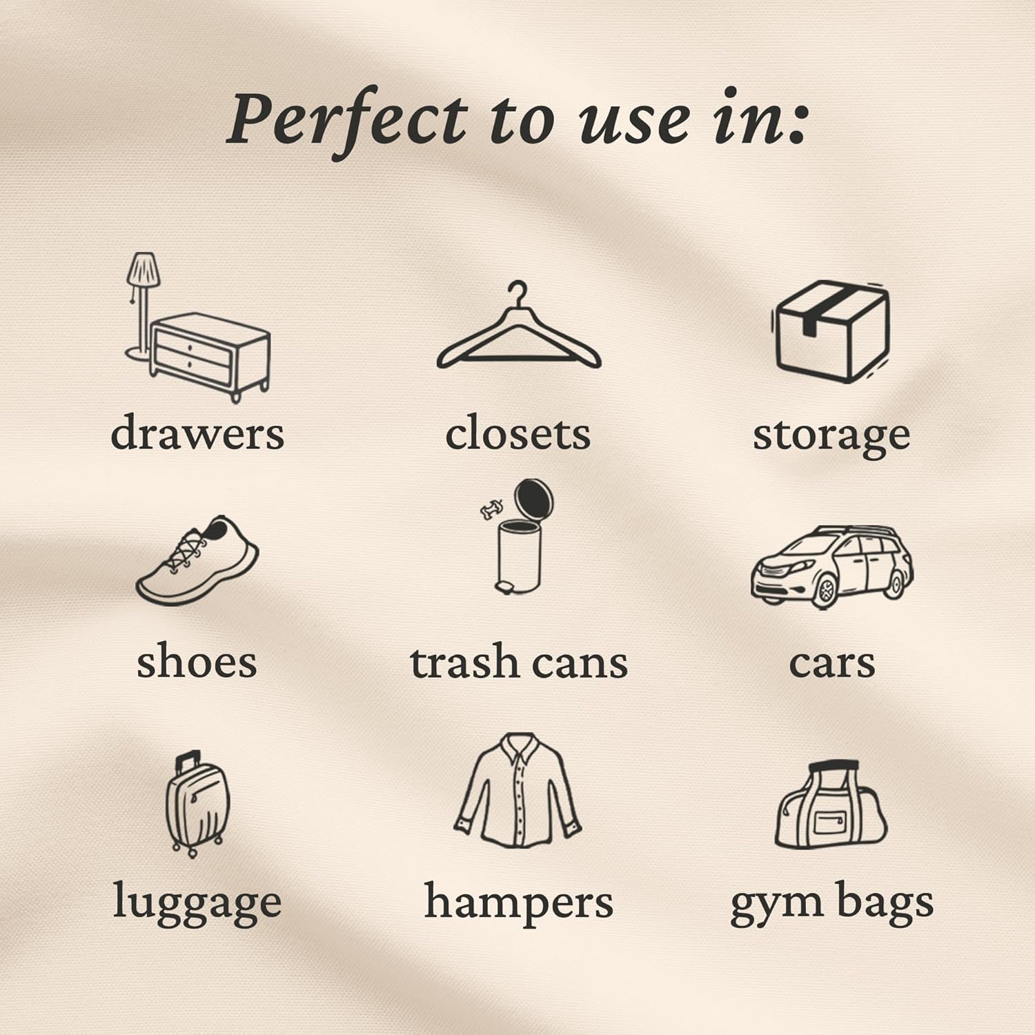 - Convenient, effective sachets that naturally eliminate tough odors for 15-30 days, leaving spaces smelling clean and fresh.
