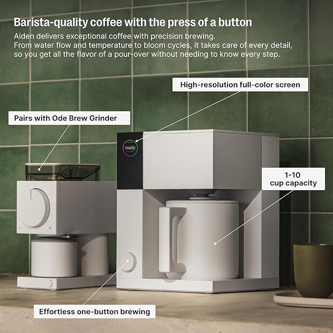 - EXCEPTIONAL QUALITY COFFEE: Aiden drip coffee maker with thermal carafe serves as your personal barista, perfecting temperature control, coffee-to-water ratios, and a built-in bloom cycle to achieve results you’d only expect at a cafe. You will taste the difference.