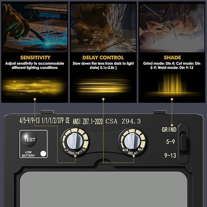 - 【Durable & Multi-Process Ready】Built for rugged environments, this welder mask meets ANSI/CE safety standards. The outer & inner lenses can be replaced easily and optimized for ARC, TIG, MIG, Stick, Grind, and more, it is your ultimate shield for professional-grade welding.