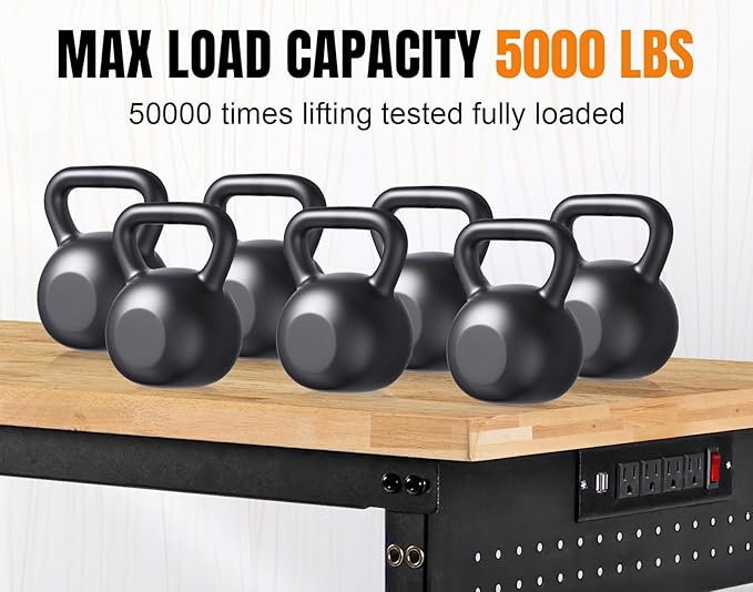 - POWER OUTLET & PEGBOARD: The ETL-certified power outlet features 4 AC outlets, 2 USBs, and 1 switch with a 9.8-foot extension cord for safety and durability. An additional pegboard allows you to efficiently organize accessories and tools to keep your workspace tidy and maximize the usefulness of your workbench.
