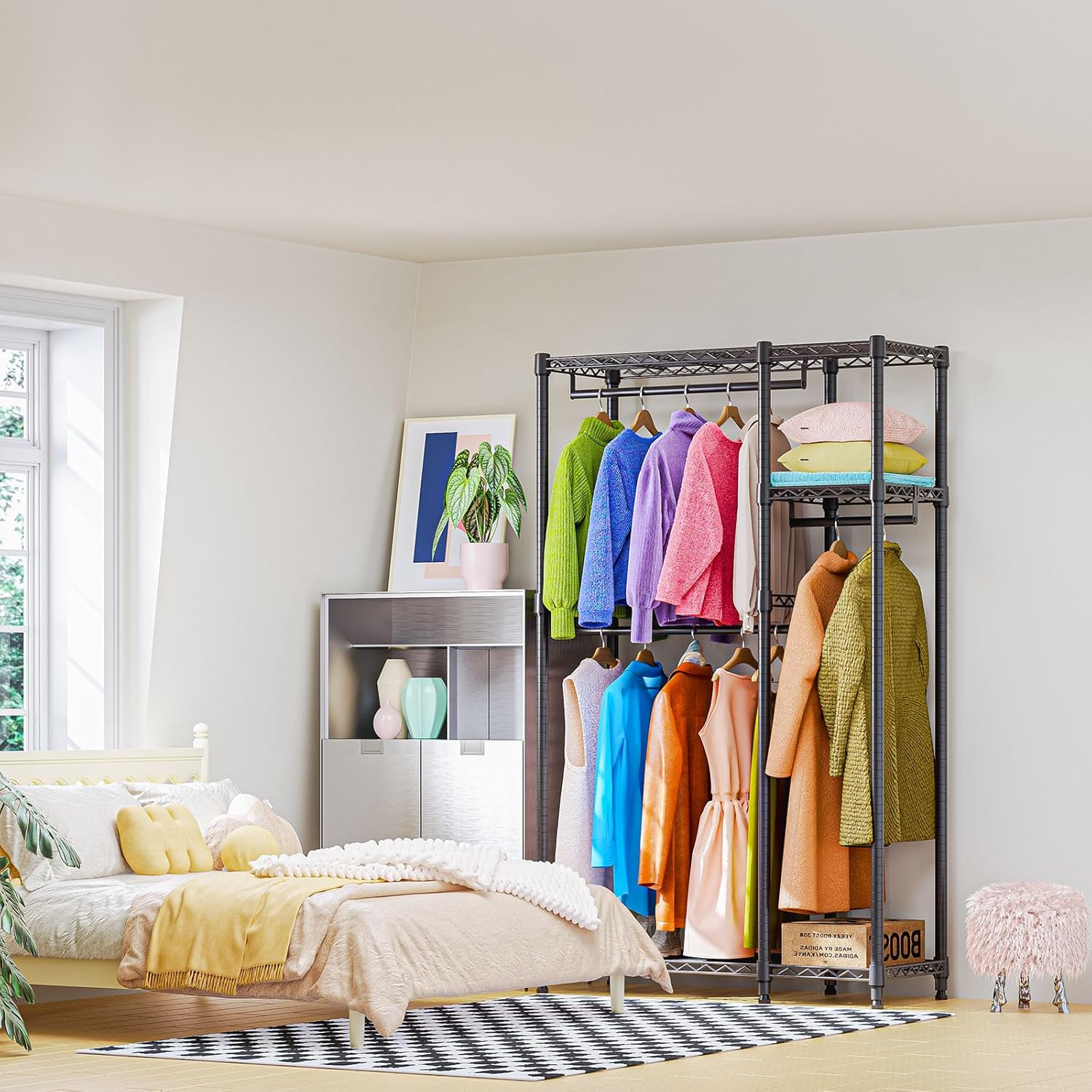 - Premium Carbon Steel Construction : Crafted from high-quality carbon steel with anti-rust materials, this garment rack features sturdy 19.1mm diameter pipes, ensuring exceptional durability and long-lasting strength.
