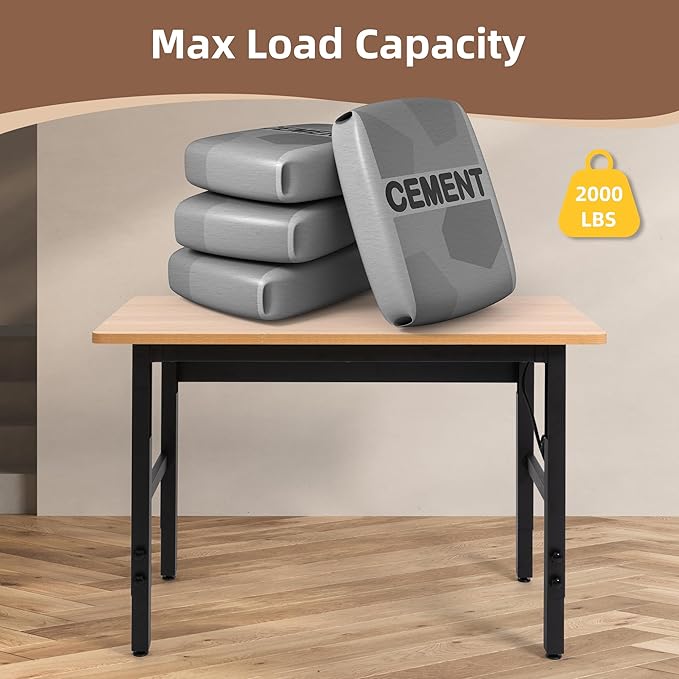48" Adjustable Workbench with Power Outlets, Work Table for Garage, 2000 LBS Capacity Hardwood Work Bench, Heavy Duty Table for Workshop, Office, Garage, Home