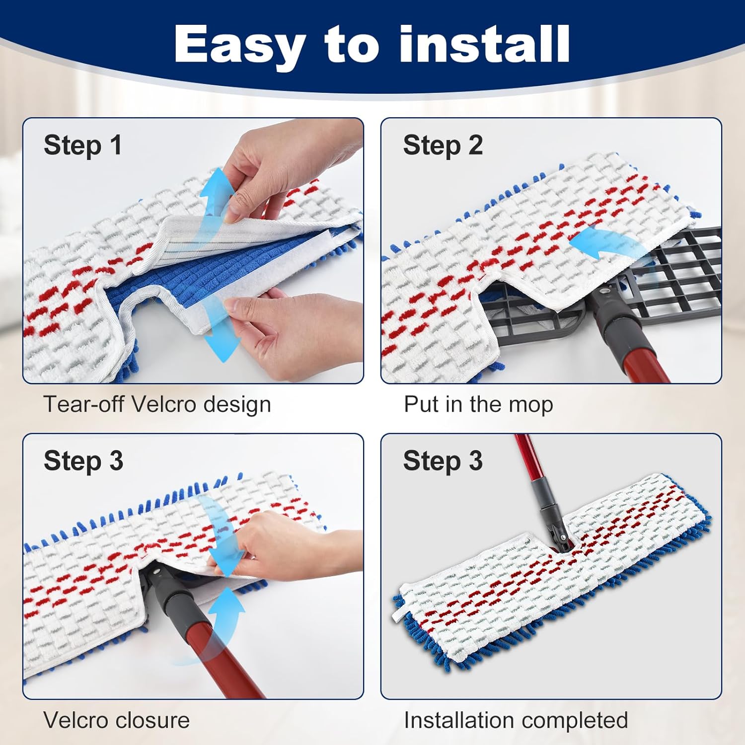 4 Pack Mop Replace Head for Ocedar Hardwood Floor'n More 3-Action Flip Mop,Mop Heads Replacements for Dry Wet Use,Chenille&Microfiber Double Sided Mop Refills,Reusable Mop Pad for Multi Surface Floor