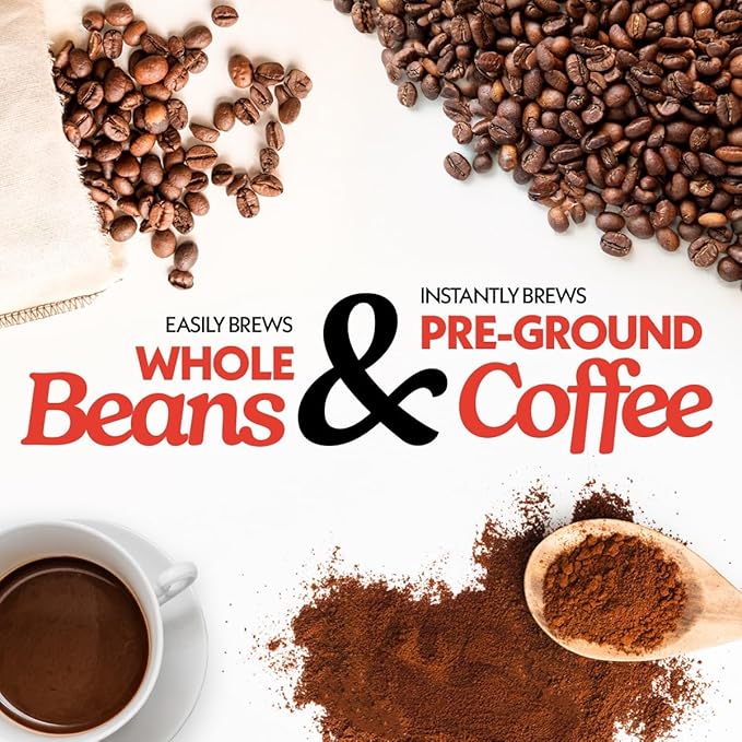 - Pause & Serve, Easy Cleanup, & Sleek Stainless Steel Design – Pour a cup mid-brew with the Pause & Serve function. The stainless steel housing offers modern durability, while the reusable filter, removable grinder assembly, and dishwasher-safe parts make cleanup effortless—ensuring a fresh start to every morning.