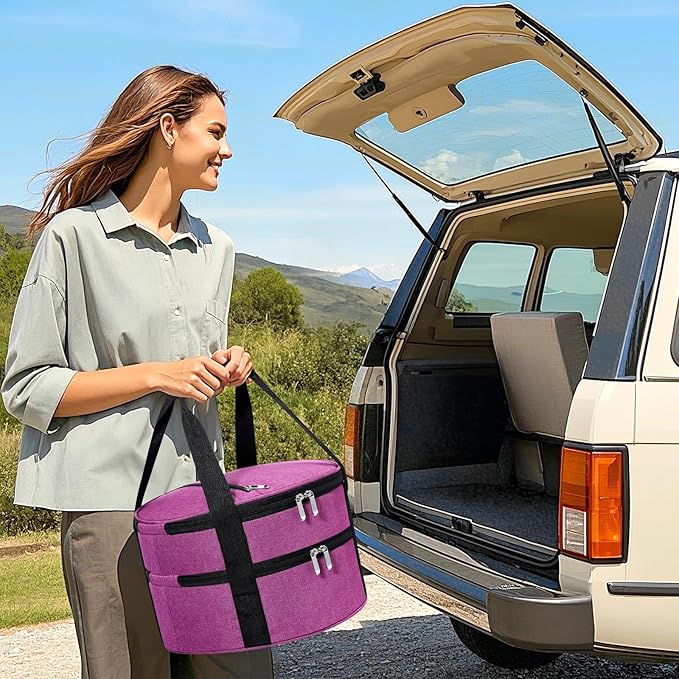 - 【Multi-function】This casserole carriers for hot or cold food is perfect for a wide range of occasions and events. It is very suitable for family gatherings, office gatherings, outdoor picnics, camping, barbecues, and more! Whether you need to transport casseroles, pizza, desserts, or beverages, this round insulated food carrier can meet your needs.You'll love the convenience and versatility of this hot food bag!