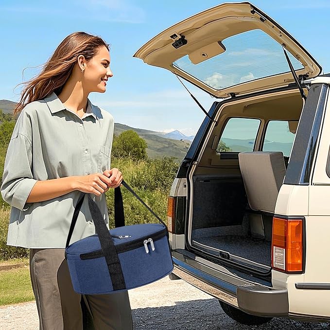 - 【Casserole Carrier for Hot or Cold Food】The inner lining of this thermal round casserole carrier is made of 8mm thick PE foam and food-grade aluminum foil, providing double insulation and excellent heat resistance. This feature allows the casserole carrier to keep food cold, hot, or fresh for hours, making it an ideal choice for outdoor activities, picnics, and camp.