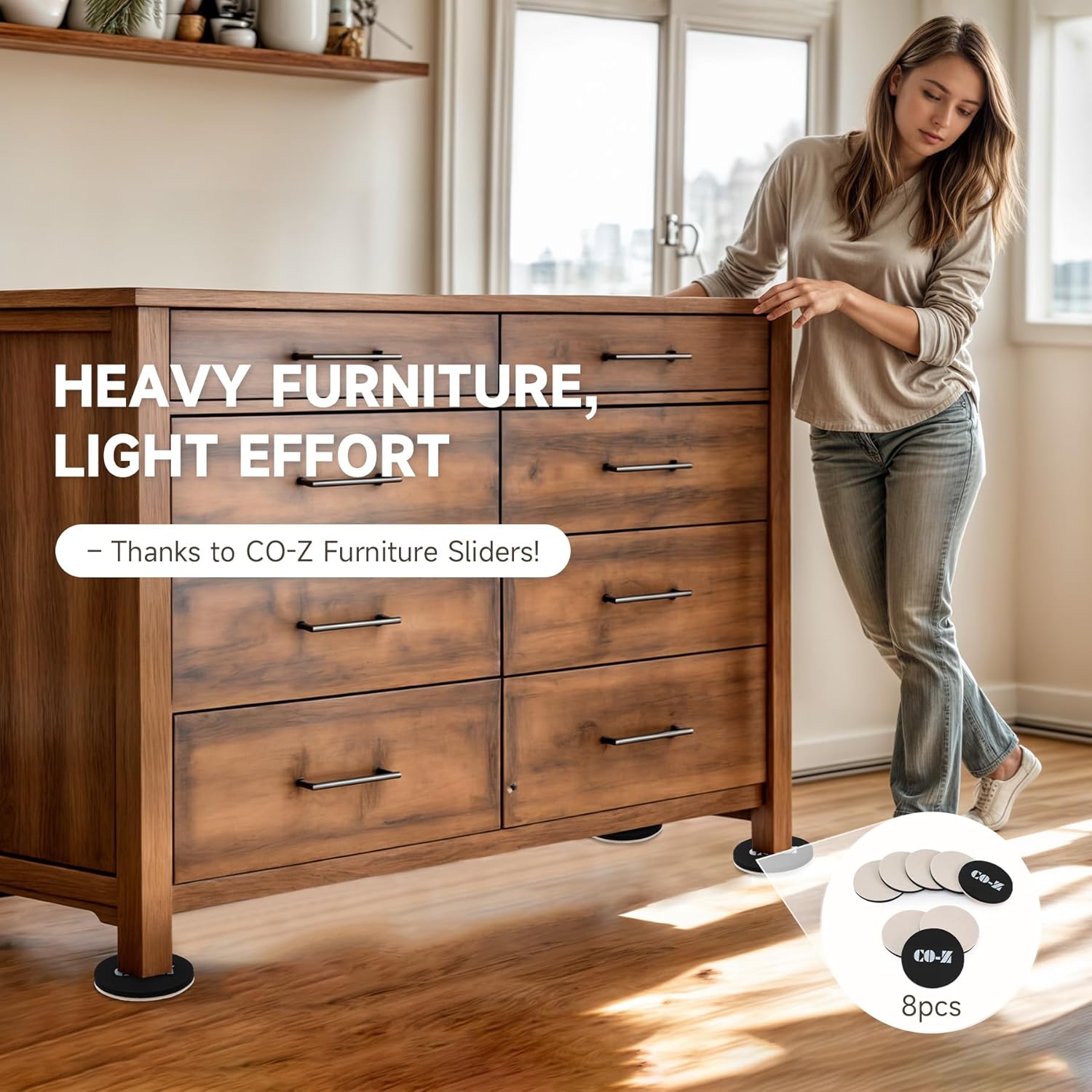- Heavy Furniture, Light Effort: This CO-Z 8pc felt furniture slider kit helps you effortlessly glide your furniture into place with minimal effort—no lifting, no strain, just smooth movement
