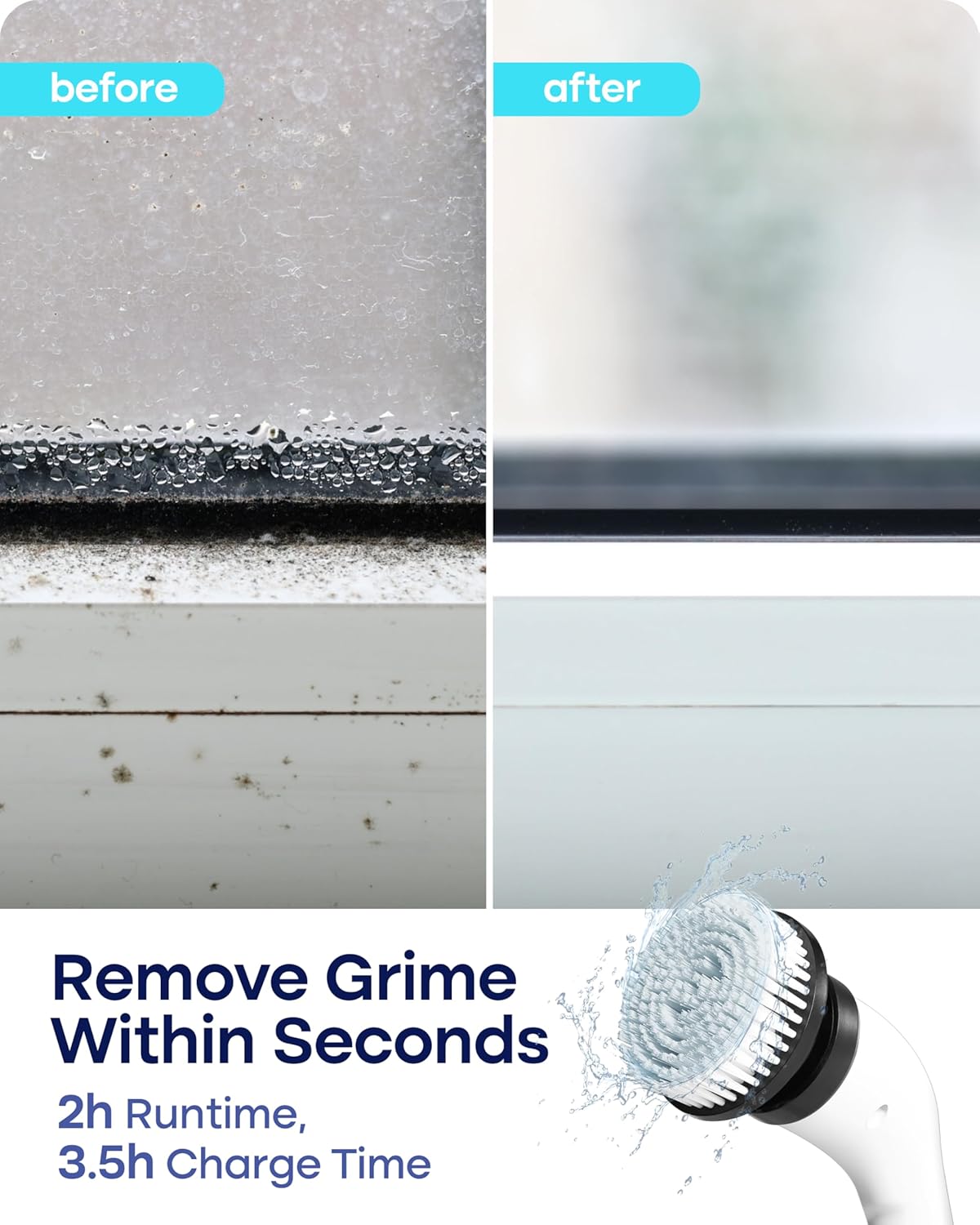 - β Powerful Cleaning with 2 Adjustable Speeds - Tackle tough grime and grout with a high-torque motor spinning up to 380 RPM. Choose between two speeds (300/380 RPM) to match any surface-from delicate glass to stubborn tile buildup