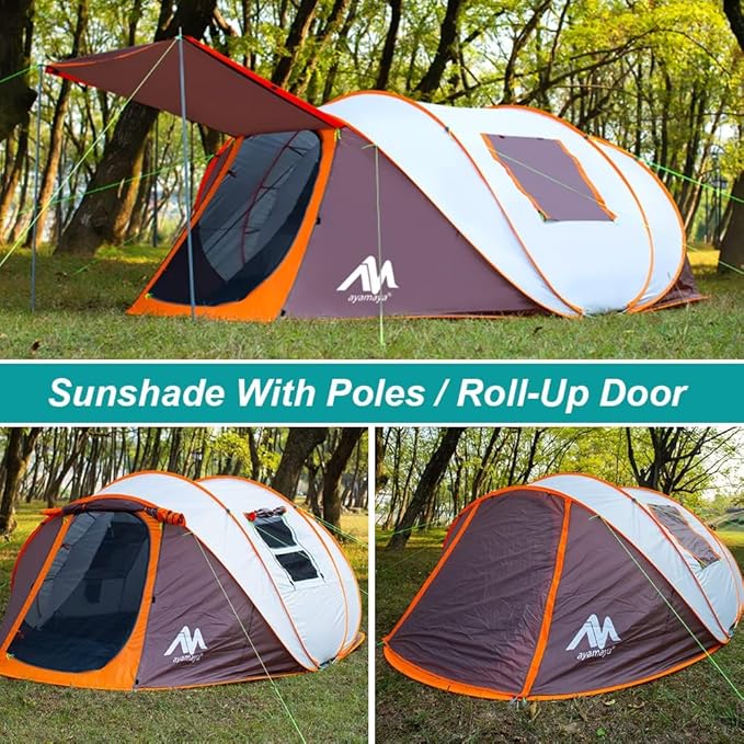 6 Person Easy Pop Up Tents for Camping - AYAMAYA Double Layer Waterproof Instant Tent with Vestibule & Porch, Large Size Family Tent Automatic Setup for 4-6 People Camping Hiking (Poles Included)