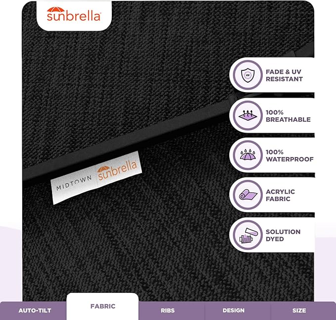 Midtown Umbrellas Sunbrella Umbrella 9 Feet Outdoor Umbrella With Spectrum Carbon Acrylic Fabric - Auto-Tilt Aluminum Frame Patio Umbrella For Backyard, Deck, Garden, Pool - Black Pole