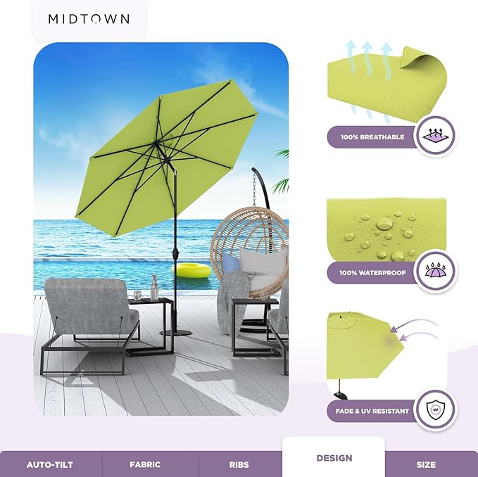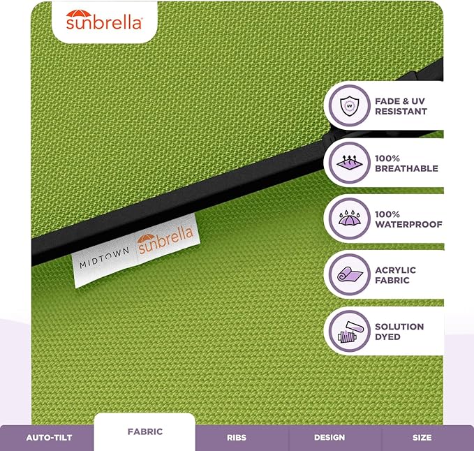 Midtown Umbrellas Sunbrella Umbrella 8 Feet Outdoor Umbrella With Sunbrella Macaw Acrylic Fabric - Auto-Tilt Aluminum Frame Patio Umbrella For Backyard, Deck, Garden, Pool - Black Pole