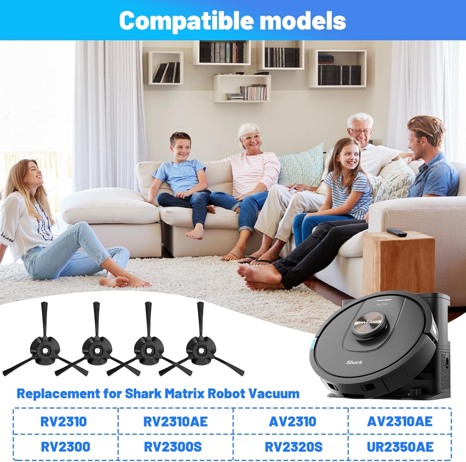 Side Brush for Shark Matrix Robot RV2310, RV2310AE, AV2310, AV2310AE, RV2300, RV2300S, RV2320S, UR2350AE RV2310cdus, UR235BCDUS Vacuum Cleaner Brush Replacment-4 Pack