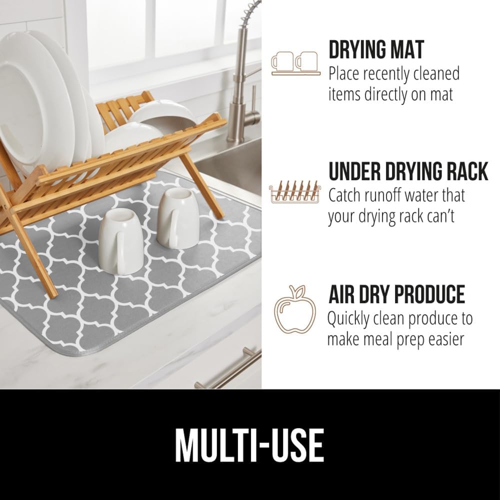 GORILLA GRIP Ultra Water Absorbent Microfiber Dish Drying Mat, 18x24, Quick Dry Mesh, Slip Resistant Pad for Sink Dishes or Under Rack, Kitchen Counter Accessories, Machine Wash, 2 Pack Quatrefoil