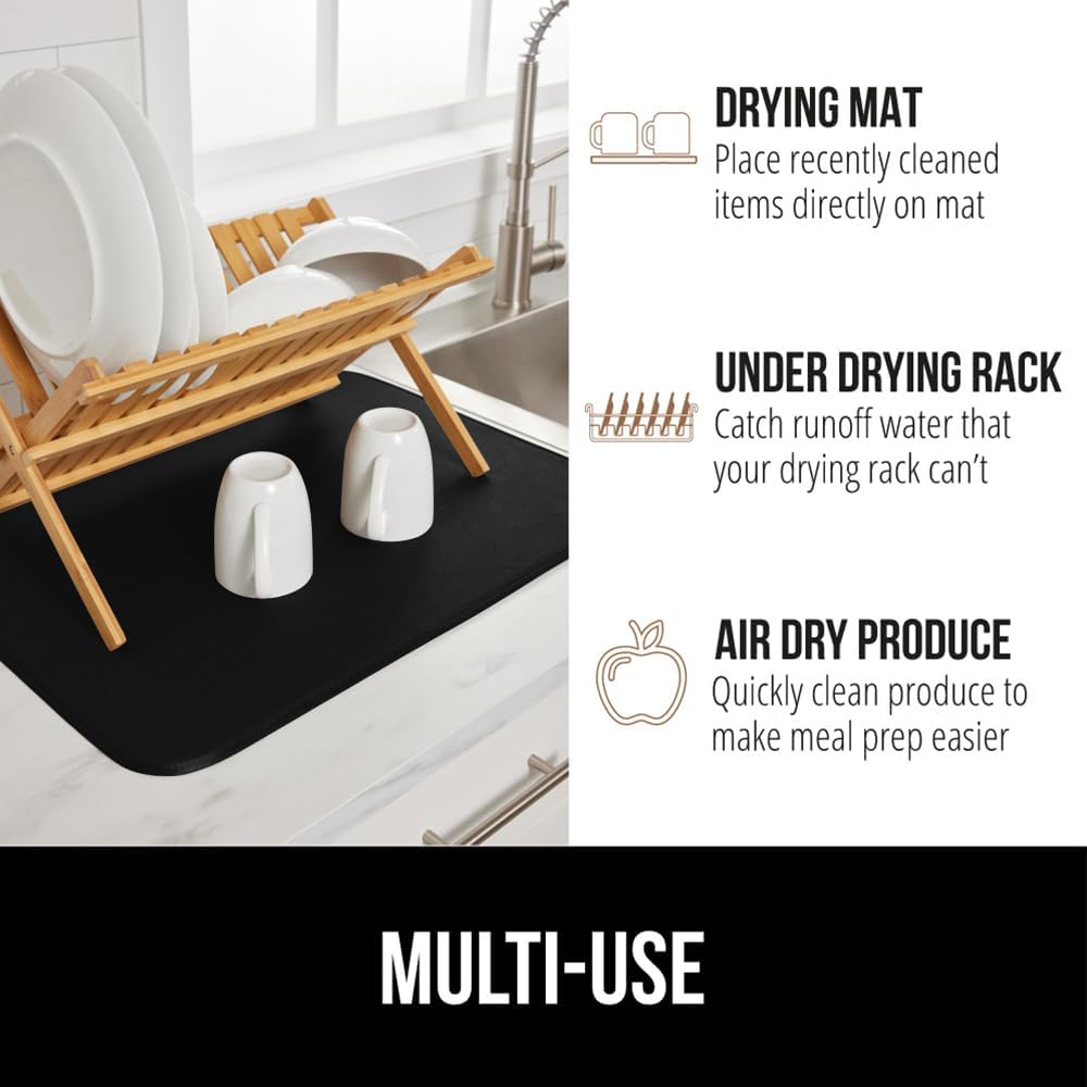 GORILLA GRIP Ultra Water Absorbent Microfiber Dish Drying Mat, Quick Dry Thick Mesh, Slip Resistant Pad for Sink Dishes or Under Rack, Kitchen Counter Accessories, 16x18, Machine Wash, 2 Pack Black