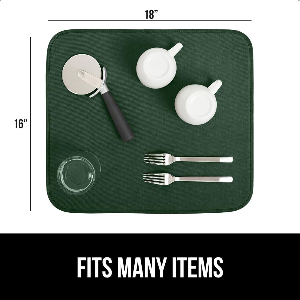 GORILLA GRIP Ultra Water Absorbent Microfiber Dish Drying Mat, Quick Dry Thick Mesh, Slip Resistant Pad for Sink Dishes or Under Rack, Kitchen Counter Accessories, 16x18, Machine Wash, Hunter Green