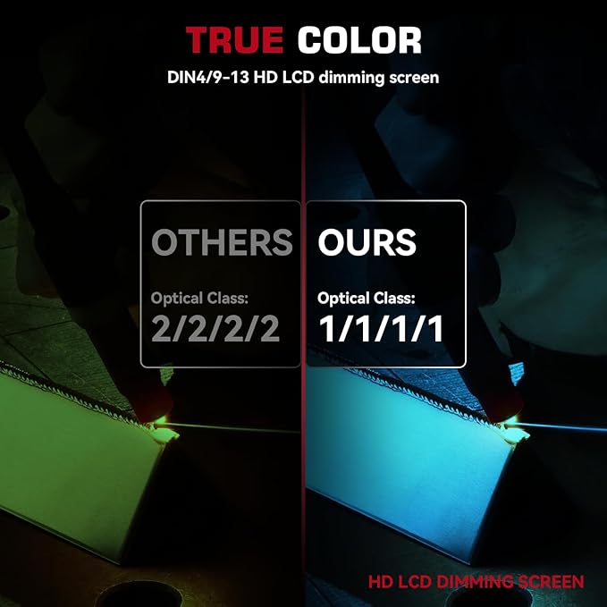 - 【LARGER & CLEARER SCREEN】Viewing Size 3.86" x 1.69". The welding helmet featuring a 1/1/1/1 optical clarity lens and advanced true color technology, provides a clearer and more realistic view for enhanced efficiency and precision. Cheater lens/magnifying lens compatible design.
