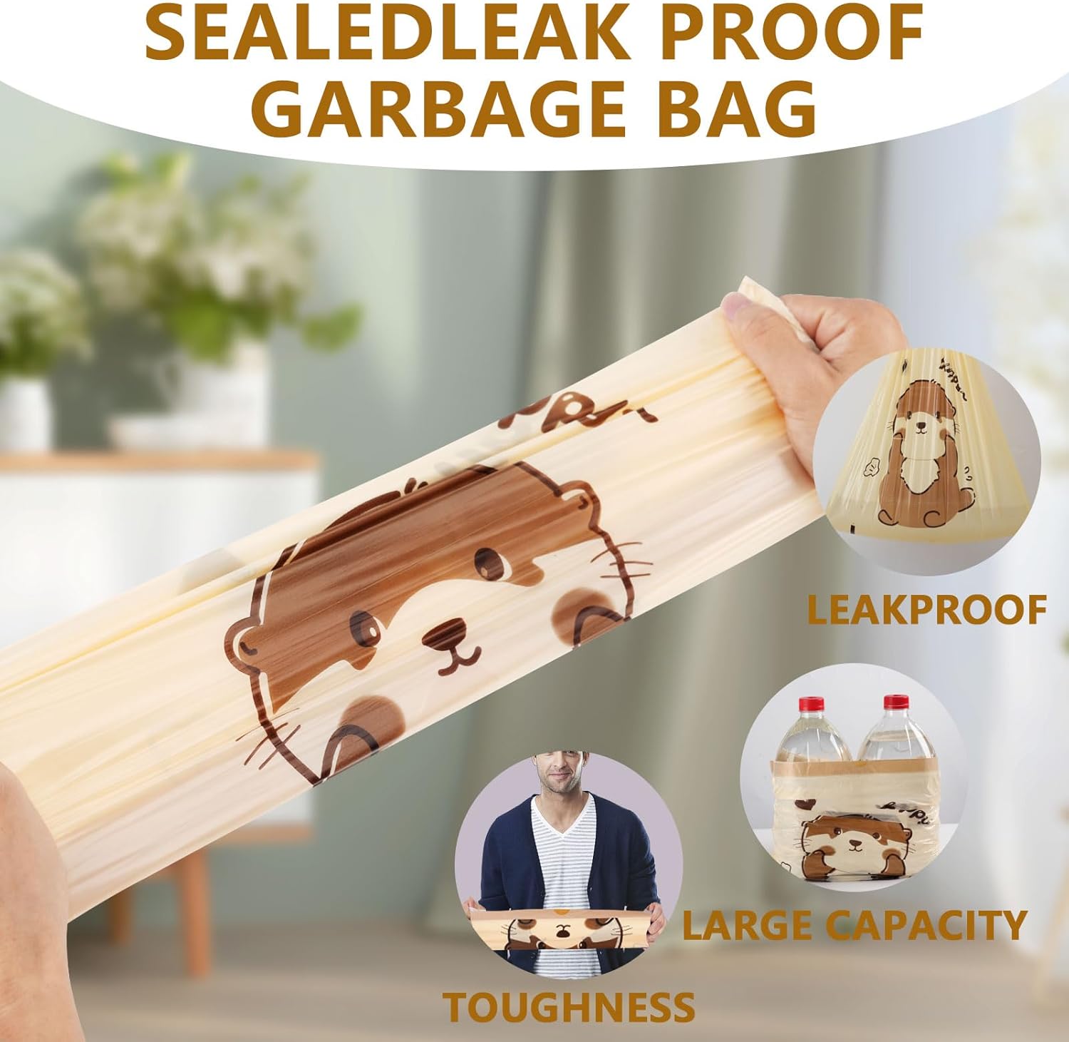 - 🦦【Playful Otters Print for a Happy Home】Brighten your daily routine with 4 gallon trash bags featuring adorable otters! Unlike plain small garbage bags , these decorative trash can bags add a whimsical touch to bathrooms, kitchens, or kids’ rooms—because beauty matters even in small spaces!