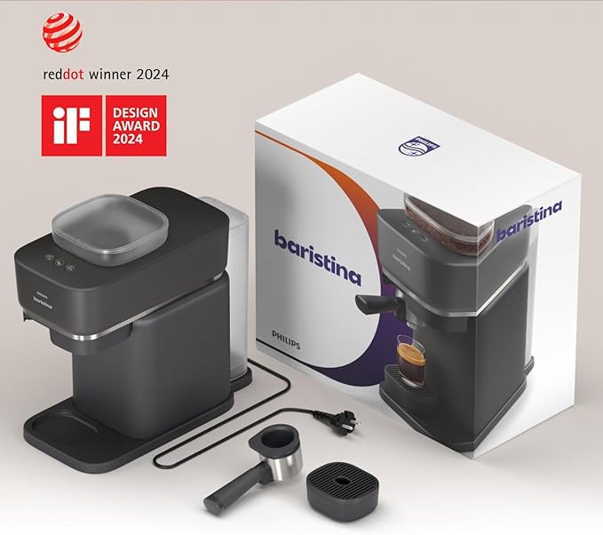 Philips Baristina Espresso Machine, Grind, Tamp & Brew Coffee Beans in One Swipe, Compact, 16 Bar Pump Pressure, Automatic Grinder, Black with Black Portafilter (BAR300/60)