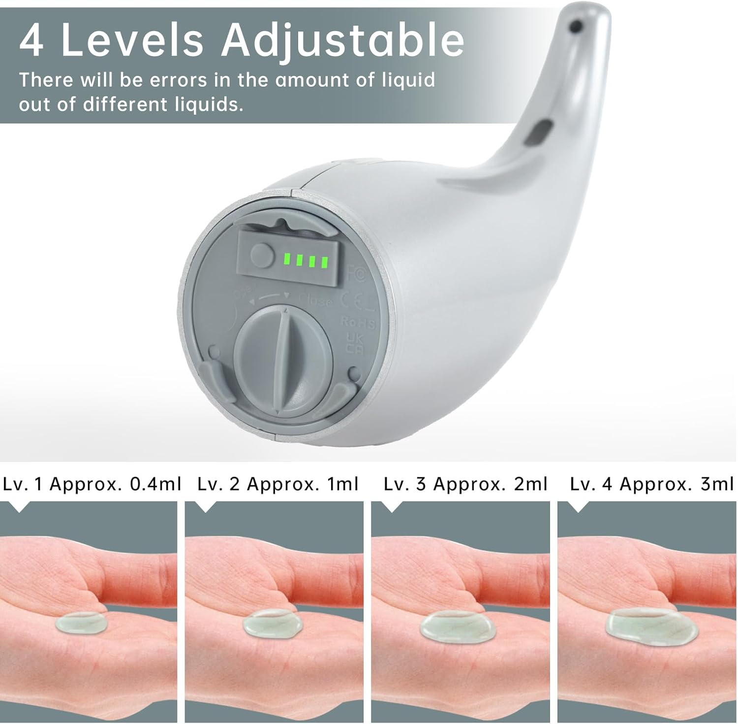 - 【Smart 4-Level Dispensing】This countertop soap dispenser offers 4 precision settings (0.4ml-3ml) - ideal for thick dish soap or light hand sanitizer. The kitchen dish soap dispenser helps reduce liquid waste while providing appropriate portions every time.