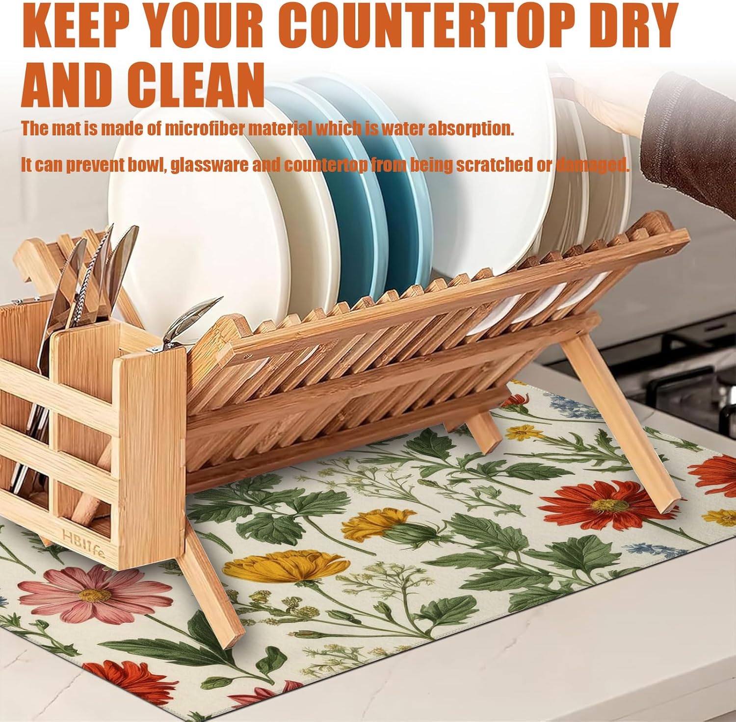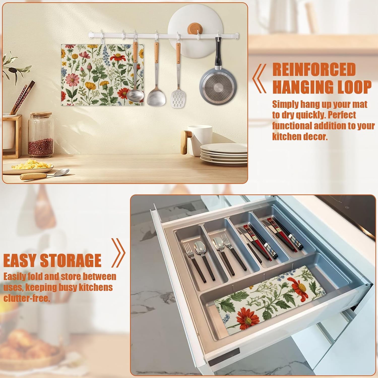 - 【Easy to Clean】The utensil drying mat can be cleaned by hand or machine to remove stains, the kitchen utensil drying mat to dry quickly without a machine. HD printed suede has excellent color lock, does not fade and can be reused many times.