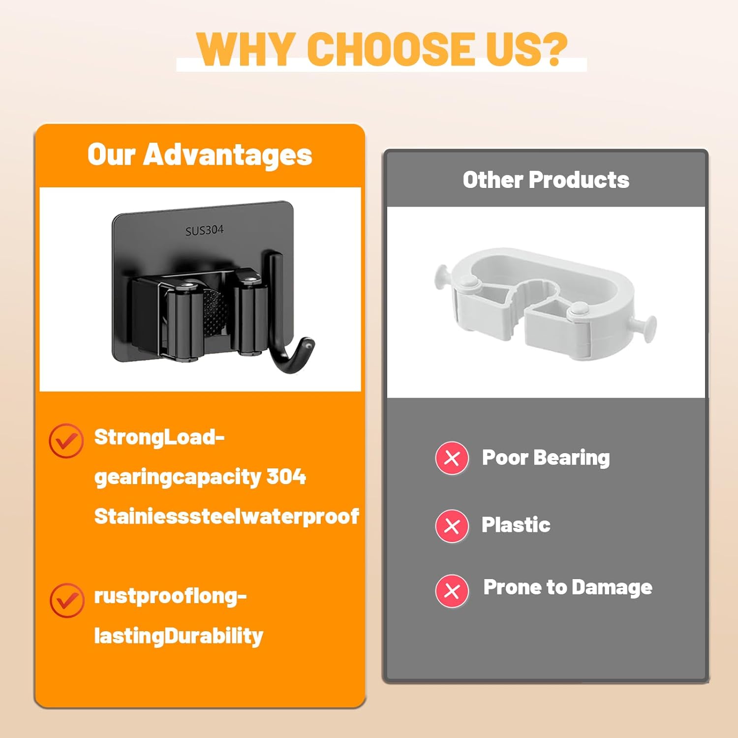 - Anti-Slip Design: Features upgraded anti-slip grips to securely hold mops, brooms, and other tools in place, even in high-traffic areas.