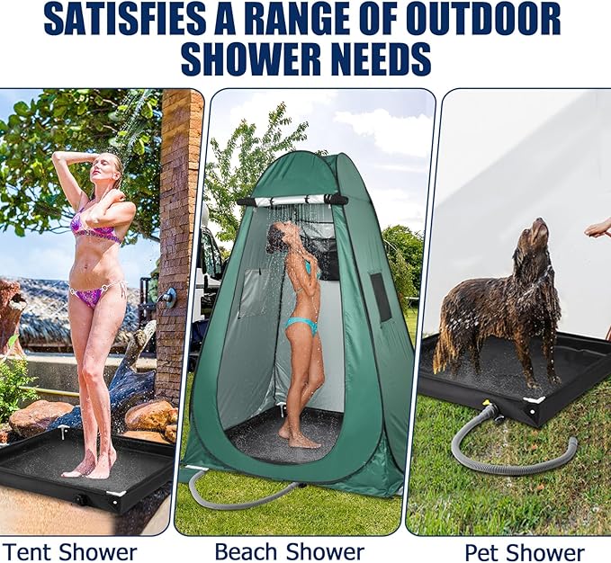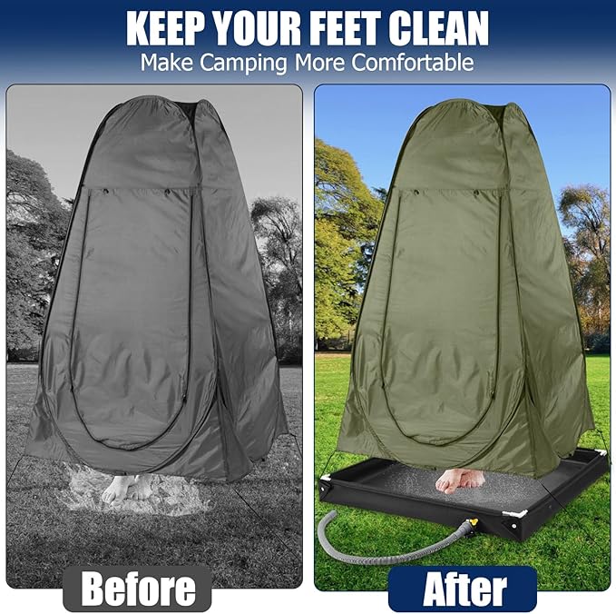 - 【Clean Feet Protection】-- Keep your feet clean and dry while enjoying the outdoors! This outdoor shower enclosure base prevents dirt and mud from ruining your shower experience. With the portable shower stall, you can ensure a comfortable, mess-free environment even in rugged settings