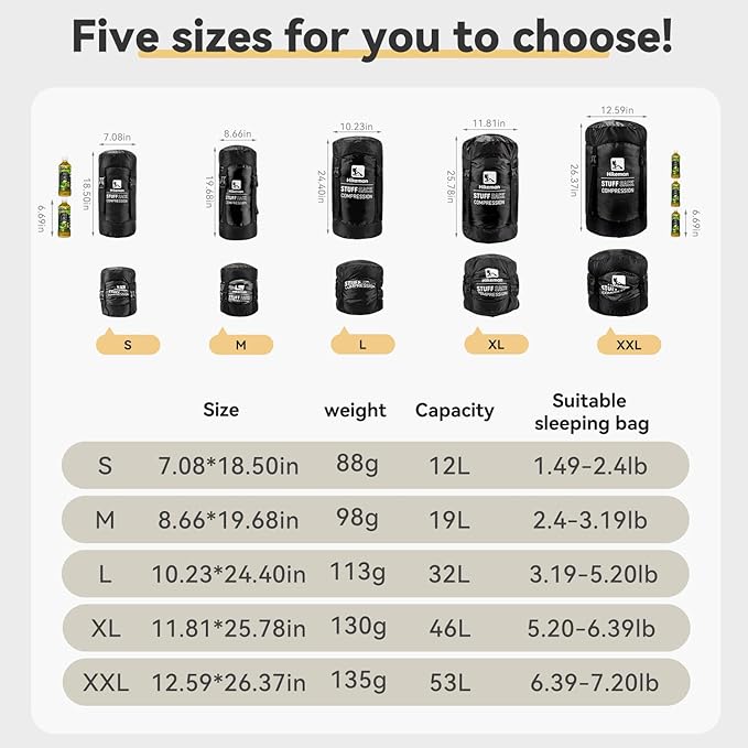 - 【SAVE 50% MORE SPACE】Our compression stuff sack is an incredibly simple and practical solution to space-saving, they will give you more space to pack what you need and give you an unprecedented portable experience