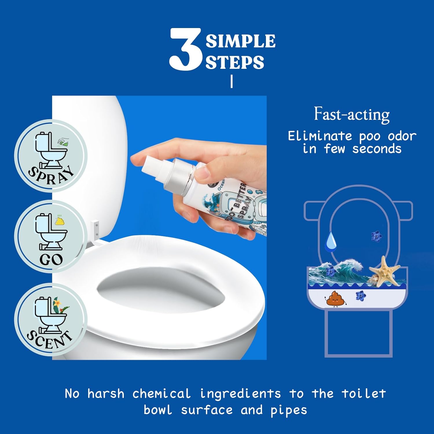 - LONG LASTING FRESHNESS: 2*3.4 FL.OZ β Up to 400 Uses β 2 Months for average poopers. It neutralizes the odor of poop in few seconds, and no one else will ever know