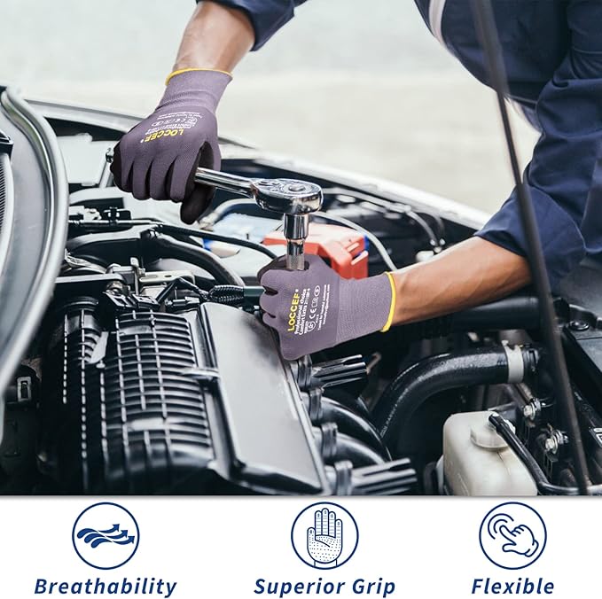 - SUPERIOR GRIP and EXCELLENT DEXTERITY:Micro-Foam Nitrile coatings are compatible with light oils and will provide a good grip and excellent abrasion resistance.Economic designed comfortable 3D snug fit into all fingers.