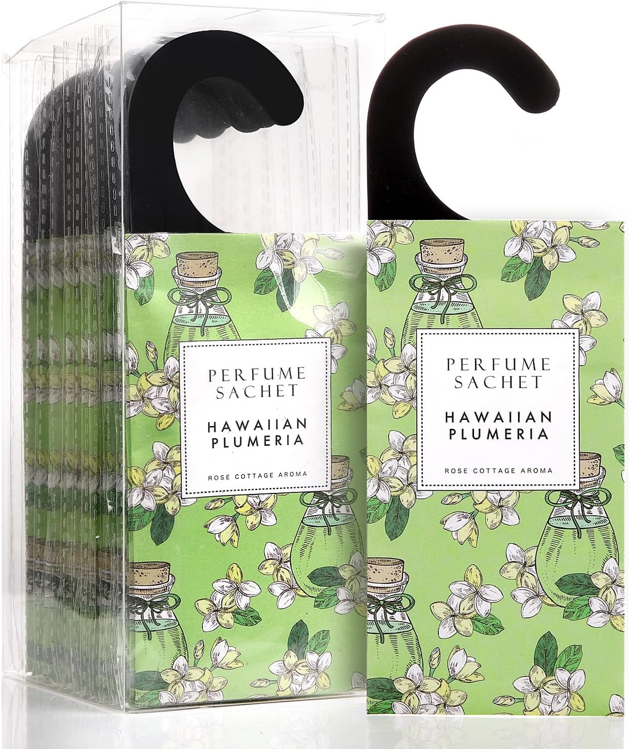 ROSE COTTAGE Large 12 Packs Hawaiian Plumeria Hanging Closet Air Freshener Scented Sachets Long Lasting Smell Goods