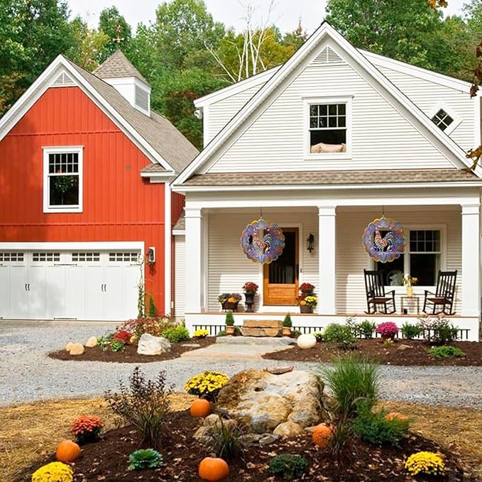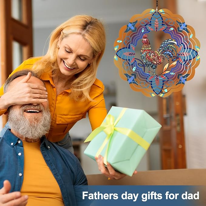 - 【3D Kinetic Wind Spinner Decor】The magical rooster style inspires the decorative hanging wind spinner, which adopts PUV Print Technology with a frosted paint finish, giving off a sparkling when it spin. The unique design combined meaningful animal pattern and a 3D streamer effect to make it seems more visual. Suitable decorate your garden and patio.