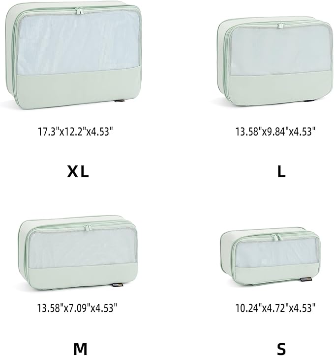 4 Piece Compression Packing Cubes for Suitcases and Backpack, Lightweight Travel Organizers (Light Green)